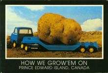 On Friday we talked about tall-tale postcards featuring unbelievable photos of crops and animals. Extra-large potatoes were used as a way to market PEI's potato industry with claims that PEI grows the biggest potatoes in the world. I think that load's just a bit too big for the Northumberland ferry...