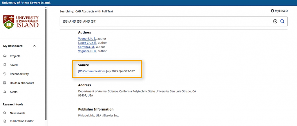 However, I also want to include other terms that might be used to refer to dairy cows, such as “dairy cattle” or “heifers.” I can add these with OR in between them, which tells the database that any one of those terms is relevant to me. Just like “dairy cows,” I’ll put “dairy cattle” in quotation marks. Heifers doesn’t need quotation marks since it’s a single word.
