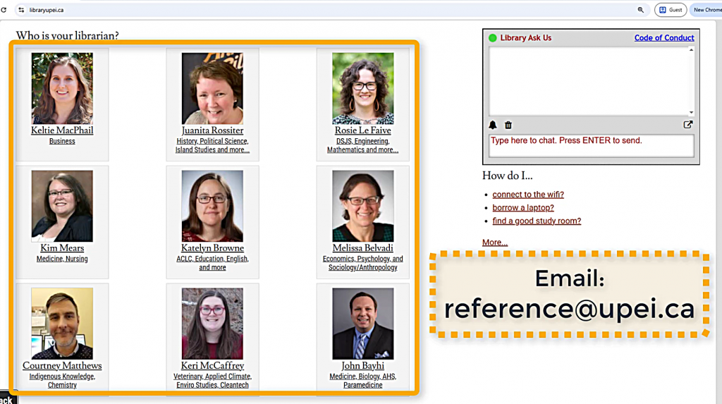 If you have questions or need support with a specific situation, you can reach out to your subject librarian or e-mail reference@upei.ca.