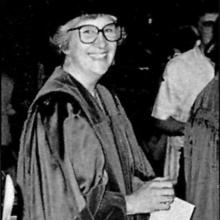 Image: Catherine Hennessey at UPEI 1987 Convocation -- UPEI Magazine. vol. 3, no. 3 (Spring 1987) ** available in print from UPEI Archives [call # LE3.P82U64] and online.
