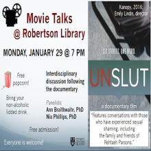 The panelists for UnSlut: A Documentary Film are Ann Braithwaite, PhD and Nia Phillips, PhD.