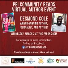 PEI Community Reads and Bookmark are excited to host a virtual author event with Desmond Cole, award-winning author of the national best-seller, The Skin We're In: A Year of Black Resistance and Power, on Wednesday, March 2nd at 7 PM.