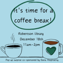 🌟 Pop-Up Surprise! 🌟For Wednesday's pop-up surprise, there will be refreshments in the library lobby today from 11am-2pm (while supplies last).Join fellow students for this delightful break, co-sponsored by Dana Hospitality. Library Event News