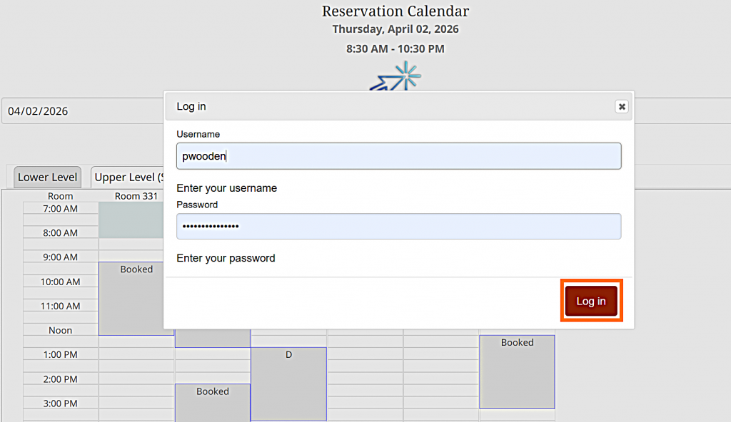 Once you’ve selected a room and time slot, click on it. You’ll be prompted to log in using your UPEI username and password.