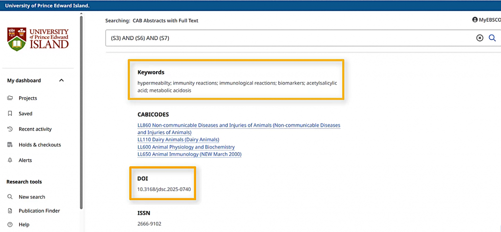 Then, select CAB (Veterinary) from the list of most popular search tools.