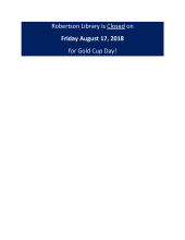 Robertson Library is closed on Friday August 17, 2018, for Gold Cup Day. We will reopen on Sunday August 19, 2018 at 1pm. News