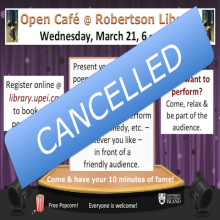 Open Café @ Robertson Library is cancelled. Stay tuned for our next event - Stress-free Zone @ Robertson Library! News