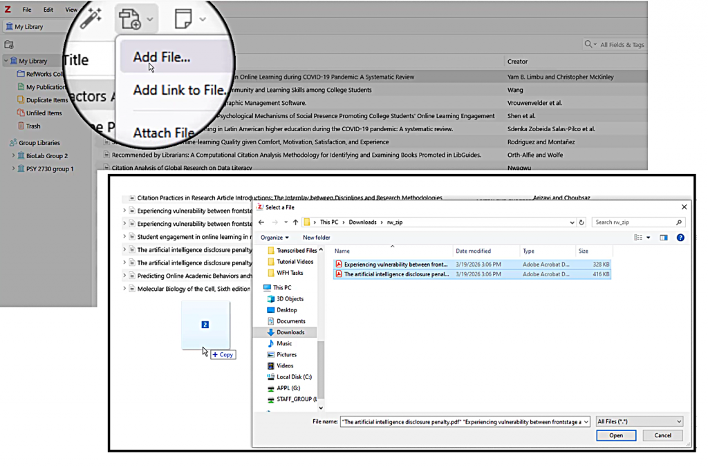 If you are not importing your references into Zotero or another tool immediately, make sure this file goes into a location that you will be able to find–and that you can back up. We also recommend changing the file name to match the project or folder that was exported.