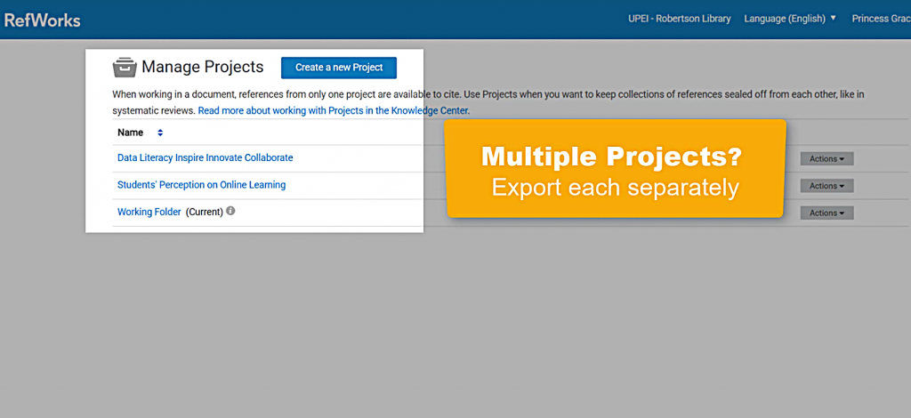 - If you have multiple Projects in RefWorks, you will need to export data from each of them separately.