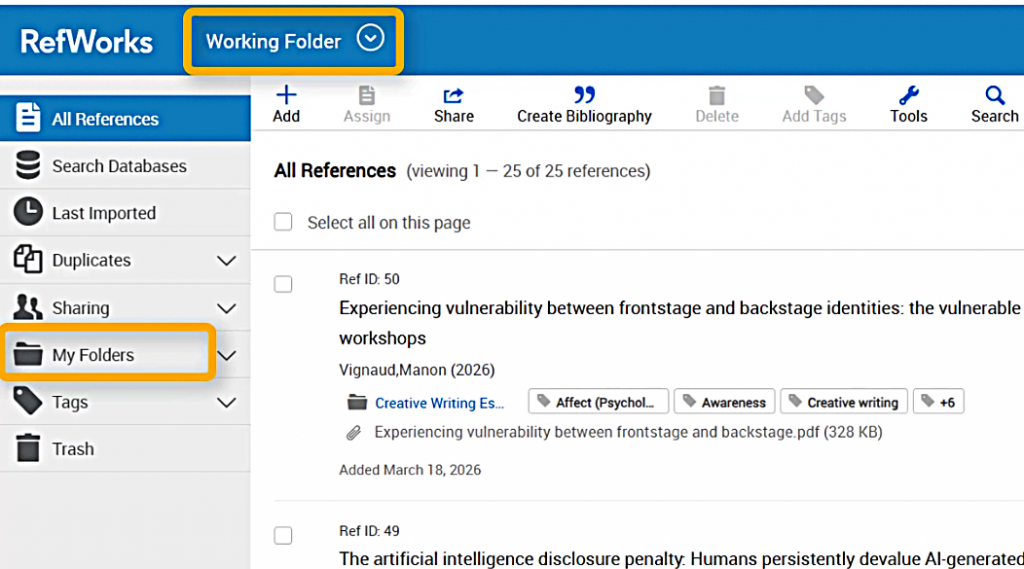 - If you use Folders in RefWorks, you will need to decide whether preserving your file structure is important. If you want to keep your references in their folders, you will need to export data from each of them separately.