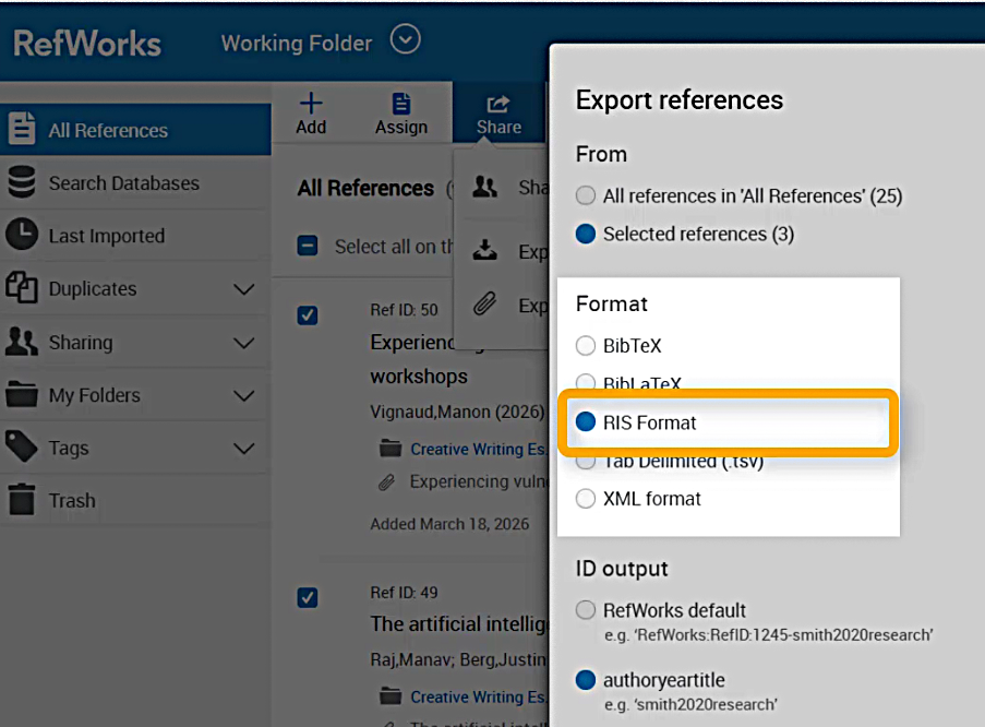 Exporting from RefWorks